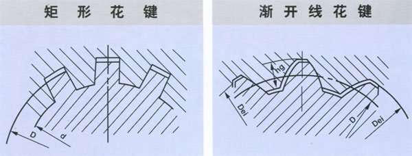 回轉直徑 φK | 矩形花鍵尺寸 齒數-大徑×小徑×寬度 | 外花鍵 | 內花鍵 |